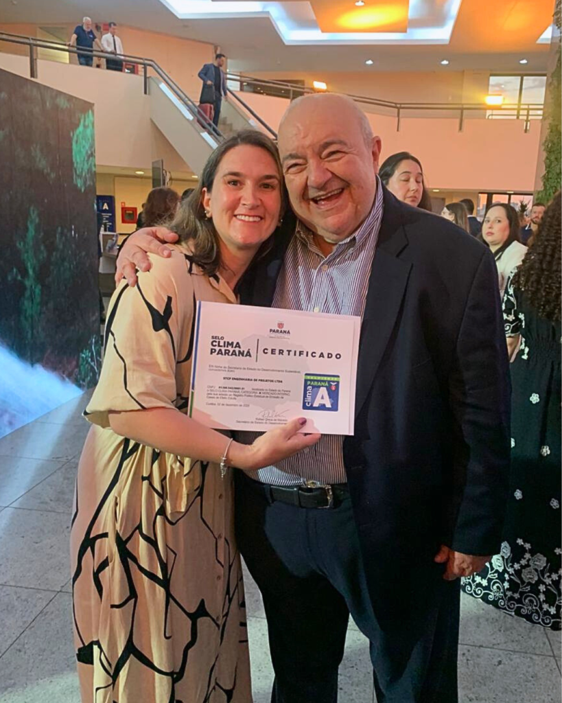 A STCP recebeu dia 02/11/25, pela segunda vez consecutiva, o Selo Clima Paraná | Categoria A, o nível máximo de certificação concedido pelo Estado, reconhecimento que reforça sua liderança e compromisso contínuo com a agenda climática e a sustentabilidade empresarial. Esta nova conquista reafirma a evolução e a consistência das iniciativas da STCP, evidenciando o compromisso da empresa em integrar práticas sustentáveis à sua gestão e aos seus projetos.